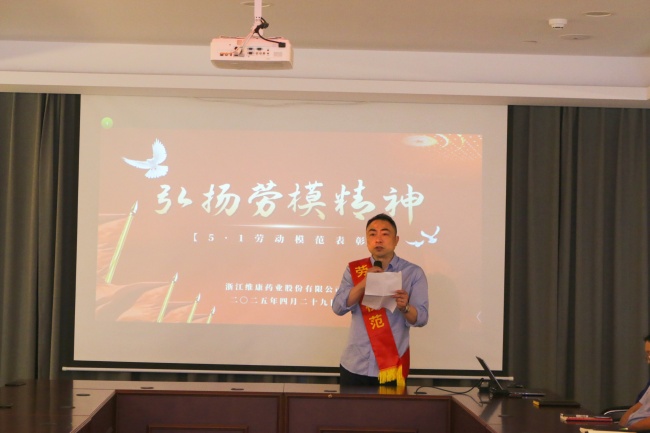 為慶祝中華全國(guó)總工會(huì)成立100周年,進(jìn)一步弘揚(yáng)勞模精神、勞動(dòng)精神和工匠精神,持續(xù)營(yíng)造學(xué)習(xí)勞模、尊重勞模、關(guān)愛(ài)勞模、崇尚勞模、爭(zhēng)當(dāng)勞模的濃郁氛圍,4月29日下午,維康藥業(yè)召開(kāi)2025年度勞動(dòng)模范表彰大會(huì),大會(huì)由黨委副書(shū)記兼董事會(huì)秘書(shū)朱婷主持。